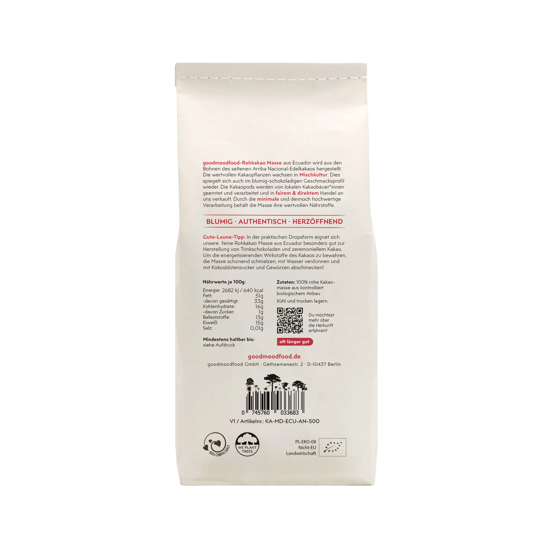 ✔BIO Kakaomasseaus ungerösteten Kakaobohnen (100% Arriba Nacional) ✔ schokoladig, breites Aromaprofil, angenehm anregend ✔ ideal zur Herstellung von zeremoniellem Kakao, Trinkschokoladen und der eigenen DIY- Schokolade ✔ aus Kleinbauern-Kooperativen in Ecuador ✔Fair & direkt gehandelt