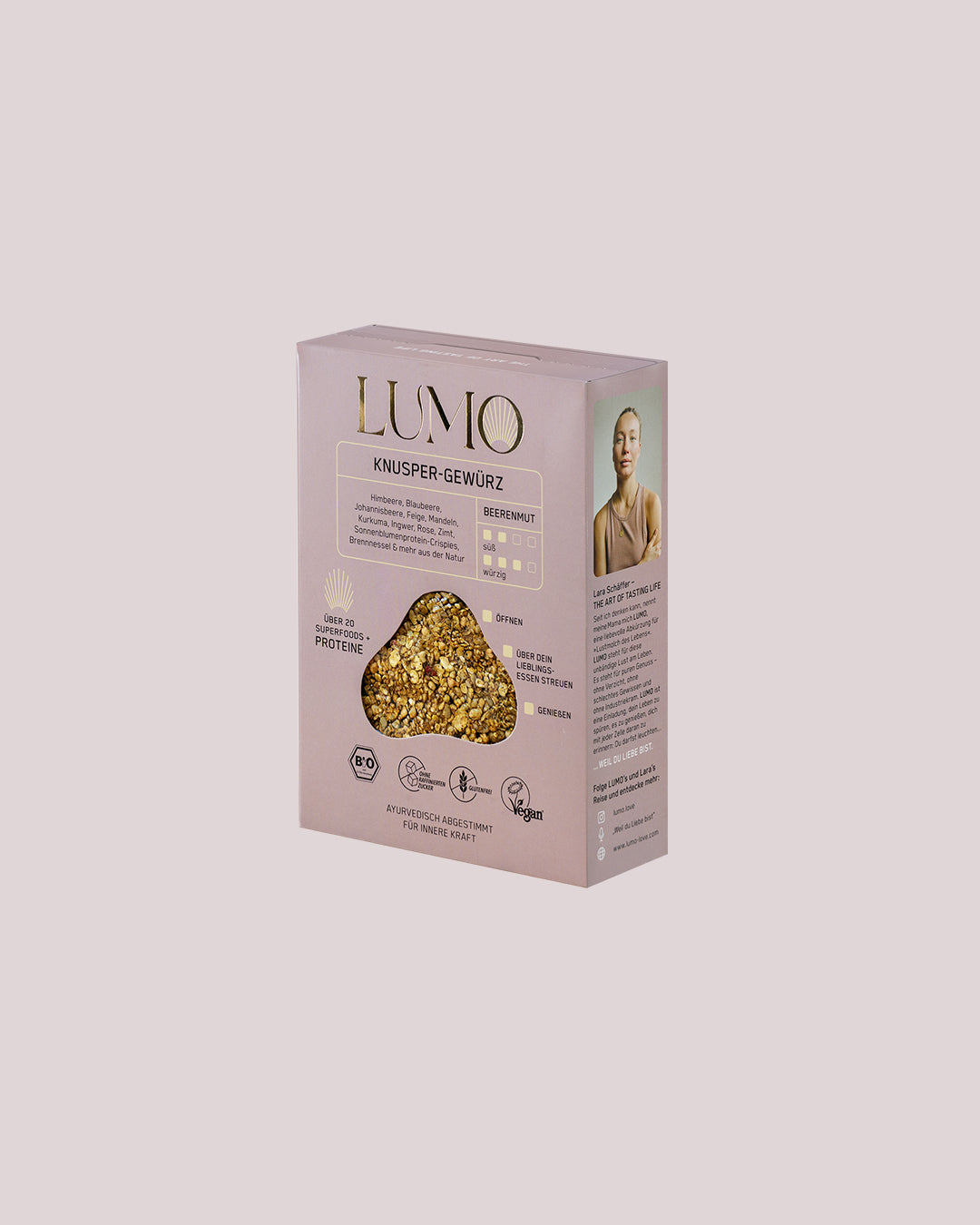 Sondern eine liebevoll fruchtige, sinnlich-knusprige Superfood-Mischung aus mehr als 20 bioaktiven Pflanzen und Gewürzen. Entwickelt, um dich zu stärken, mental zu balancieren und Heißhunger sanft zu regulieren.